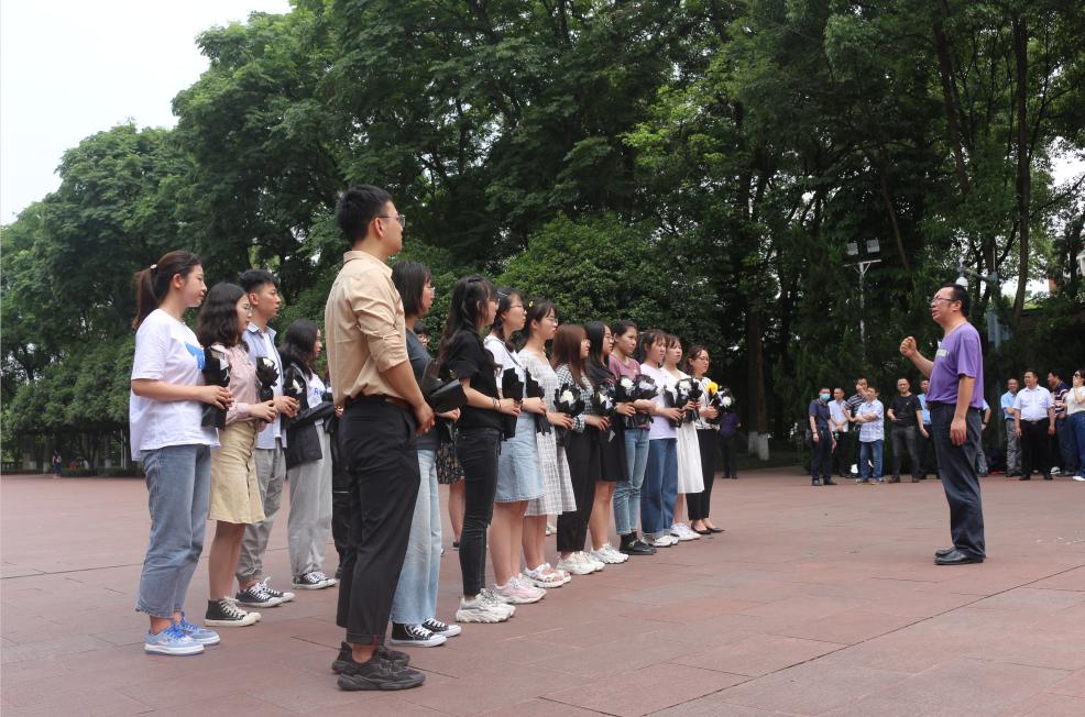 5月14日下午,师生党员乘车一同前往歌乐山烈士陵园,重温入党誓词,瞻仰歌乐山革命烈士纪念碑,缅怀革命先烈,并参观红岩魂陈列馆,追寻先烈足迹,铭记红色历史,传承红色基因,接受党史教育和精神洗礼。仪式由学院学工办主任古纯玉老师主持,首先,在庄严的烈士墓前,全体肃立低头默哀一分钟,表达对烈士无尽的哀思。随后,在员工一支部支部书记邓艺老师的带领下,全体面对党旗庄严宣誓,庄重神圣的宣誓词激励着每一位师生党员,响彻云霄,振奋人心。