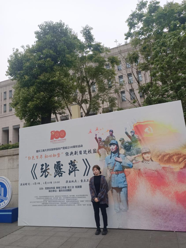 主讲同学与京剧《张露萍》宣传海报的合影