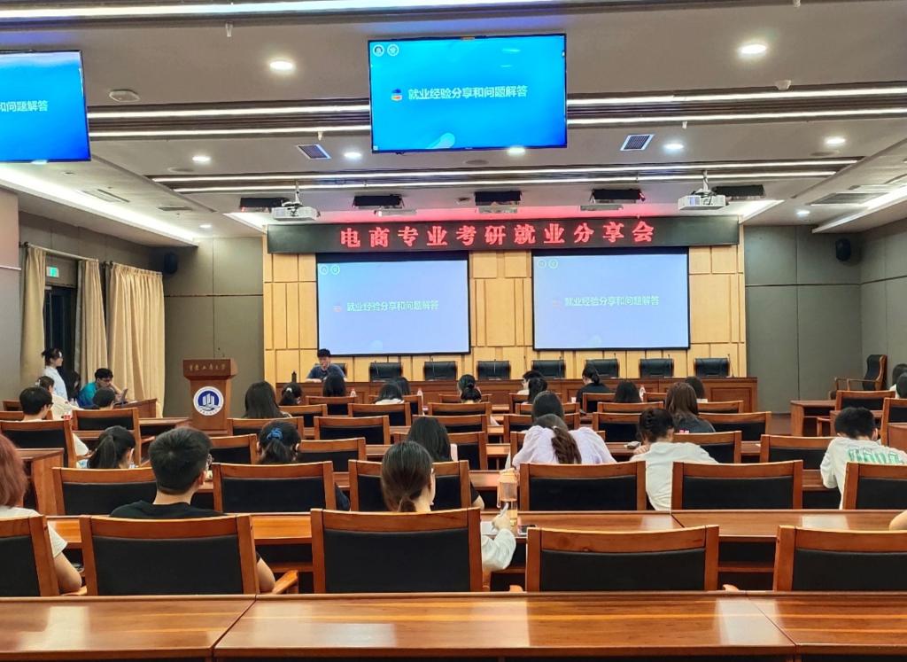 为切实帮助青年员工做好学业和职业规划,扎实开展“我为群众办实事”活动,管理科学与工程学院员工支部与小云雀电子商务社团于4月27日在新图书馆第一会议室联合开展考研就业分享活动。