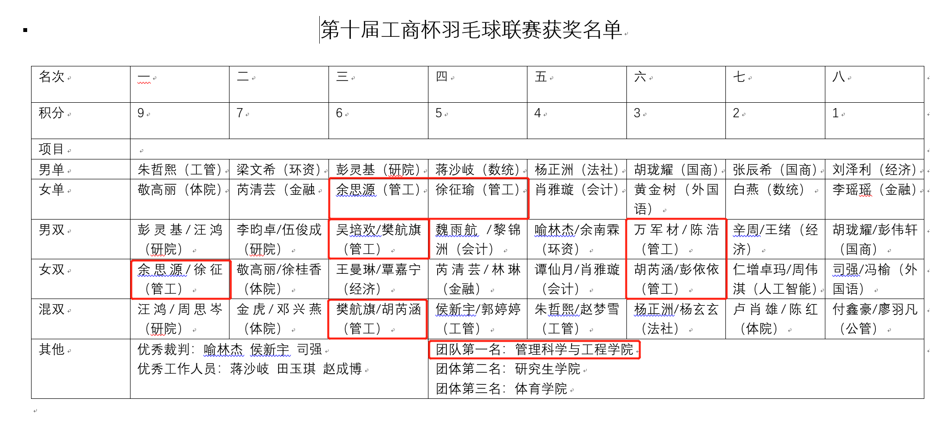 此次羽毛球赛中,管工学院代表队团结协作、积极奋进,在比赛中不仅展示了高超的技艺水平,更是在团队协作中彰显了管工学院独特魅力。管工学院在此次比赛中荣创佳绩,引导员工积极参与校园体育运动,助力学院体育文化建设,促进员工德智体美劳全面发展!