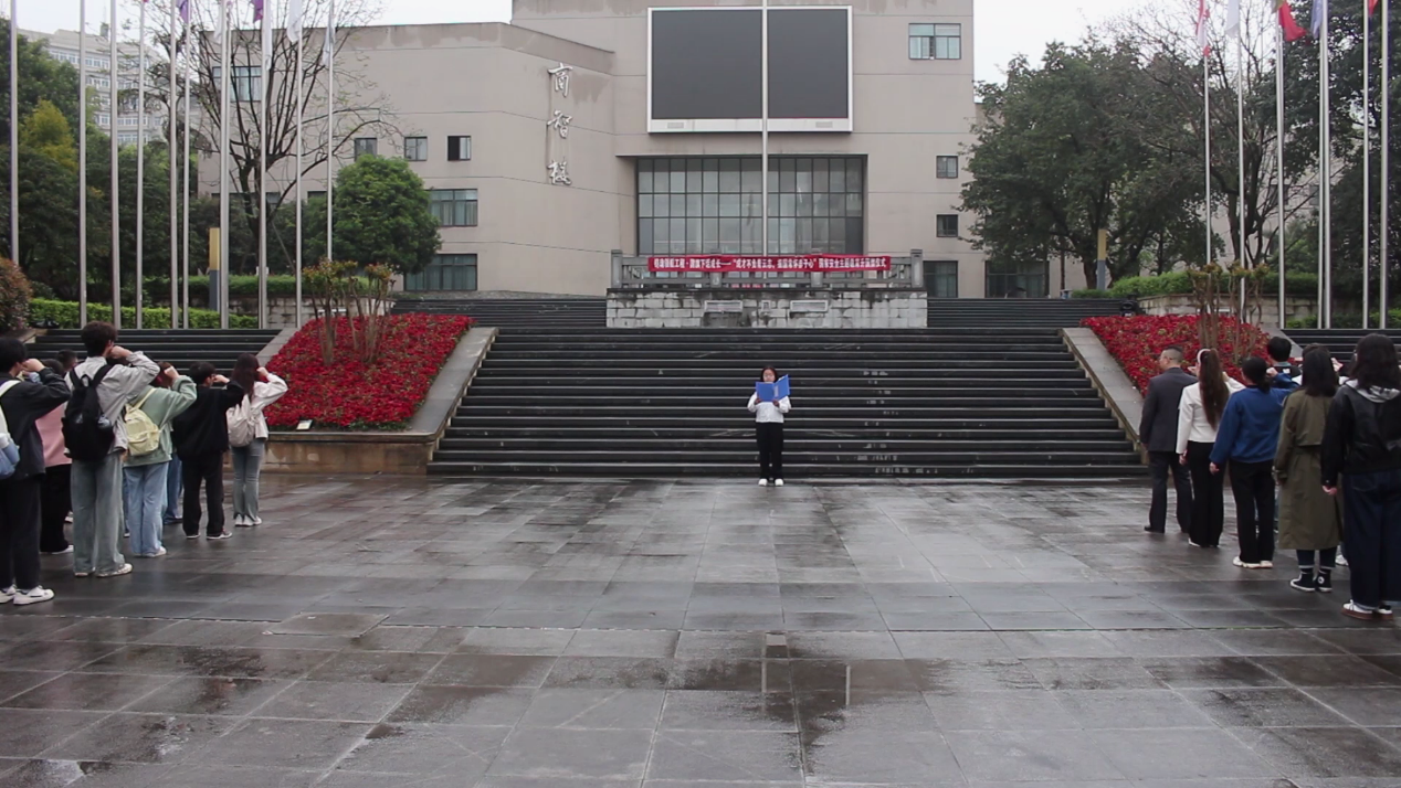 员工代表李茂政深情朗诵诗歌《祖国颂》,“我们永远跟党走,万众一心,同舟共济,携手共进,谱写最美华章!”广场上激荡的回声真切表达了青年学子对祖国母亲的眷眷深情。