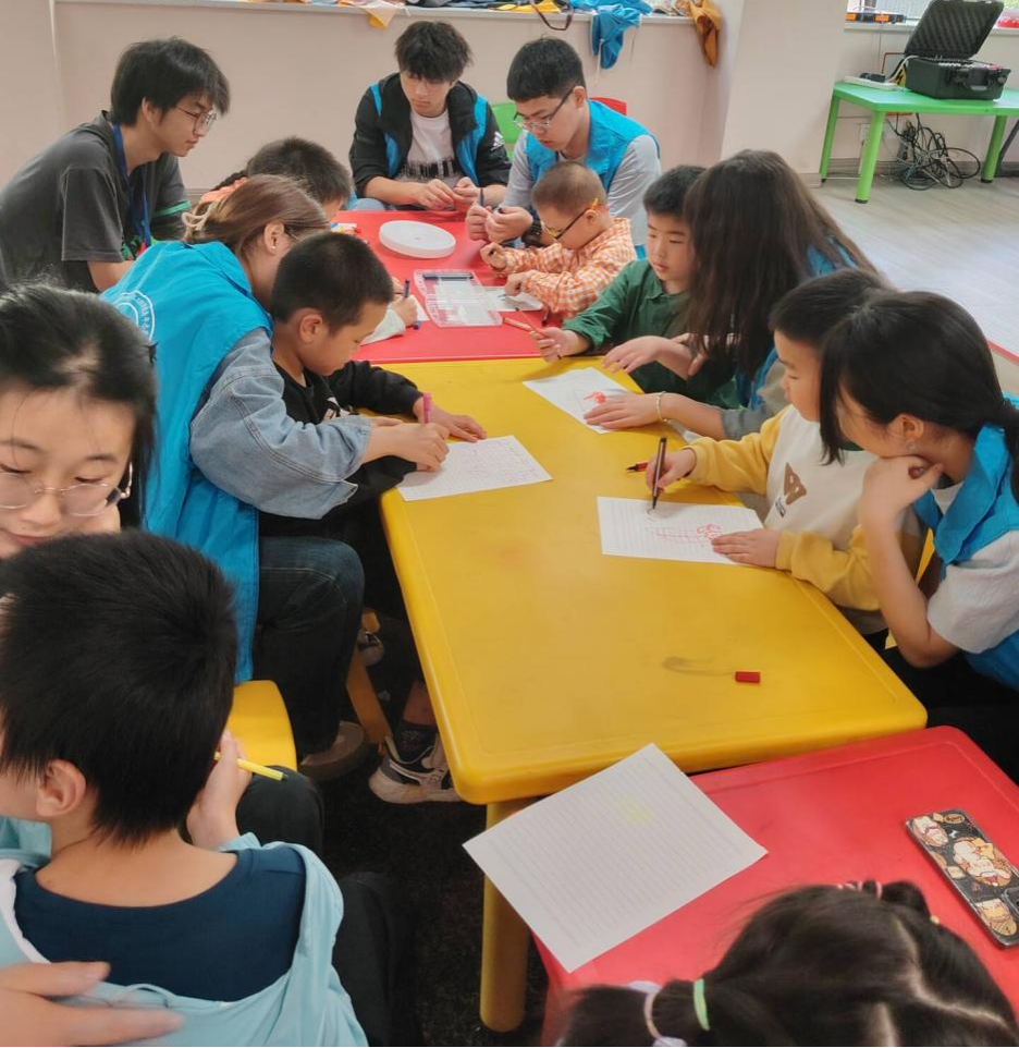 活动于下午两点开始,主持人致开场词。然后,志愿者们与小朋友一起开展了《动植物猜猜》、《听到水果请拍手》、《大泡泡和小泡泡》等游戏。每一位小朋友都积极参与到游戏中来,向志愿者们展现了独特的想象力。志愿者和小朋友的欢声笑语交织在一起,活动现场洋溢着愉快和活力。游戏结束后,志愿者们和小朋友一起合唱《猪猪侠》和《虫儿飞》等儿歌,大家跟随着节奏一起拍手,现场气氛到达了高潮。最后,小朋友和志愿者们一起绘画,充分给予小朋友们挥洒自己的创造力的空间,本次志愿活动也接近了尾声。