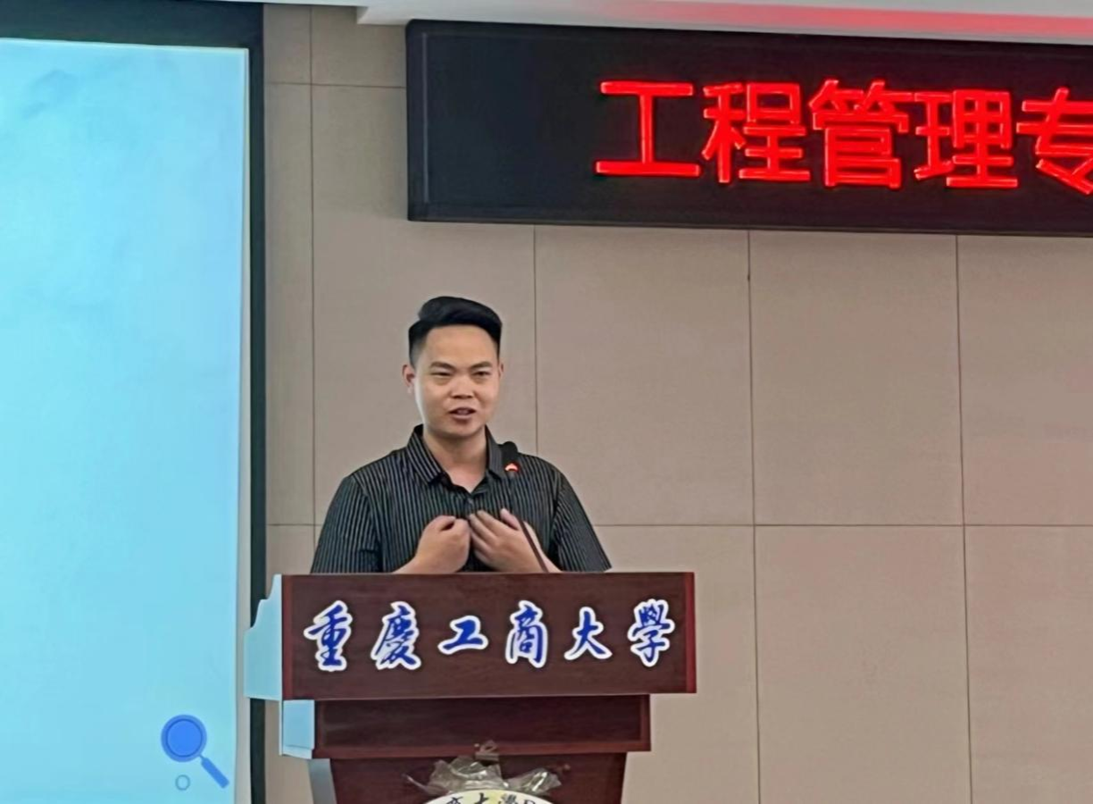校团委书记吴佑波,HAHA体育分党委副书记、纪委书记赵钰鑫,员工工作办公室主任古纯玉,工程管理系主任梁桂保,副主任梅中亚及工程管理专业员工代表出席本次活动。活动还特邀重庆红烛书院创始人金小龙先生,愉政企业管理培训有限公司创始人谢刚先生,重庆中交物业管理有限公司西部区域常务副总经理文强先生,重庆市建设项目管理有限公司咨询事业部部长张亚林先生作为嘉宾与在场的工程管理学子分享经验。