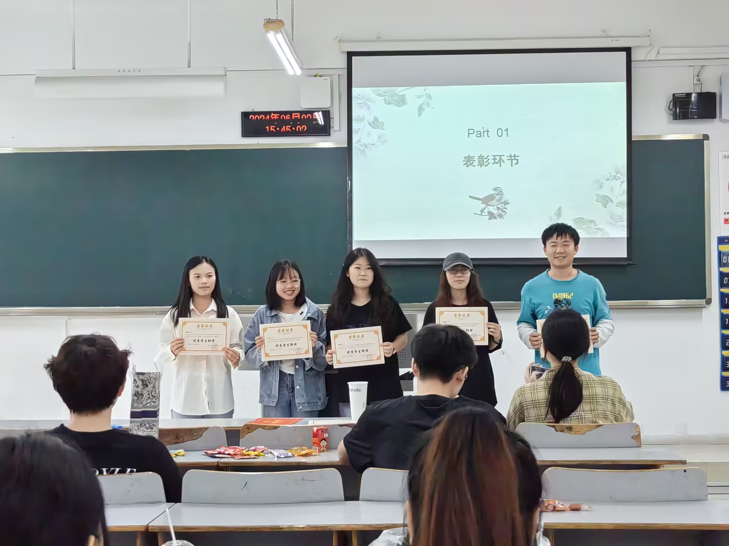 大会伊始,首先进行了表彰环节。经过严格的评选,胡馨月、周洁、梁恒瑞、江维、程雯玉五位部长凭借在部门工作中的出色表现,荣获“优秀部长”称号,由徐檬会长上台为他们颁发荣誉证书。紧接着,张婧轲、周娅、王清漪三位干事被评为“优秀干事”,由李建泉会长为他们颁奖,并对他们的辛勤付出表示感谢。