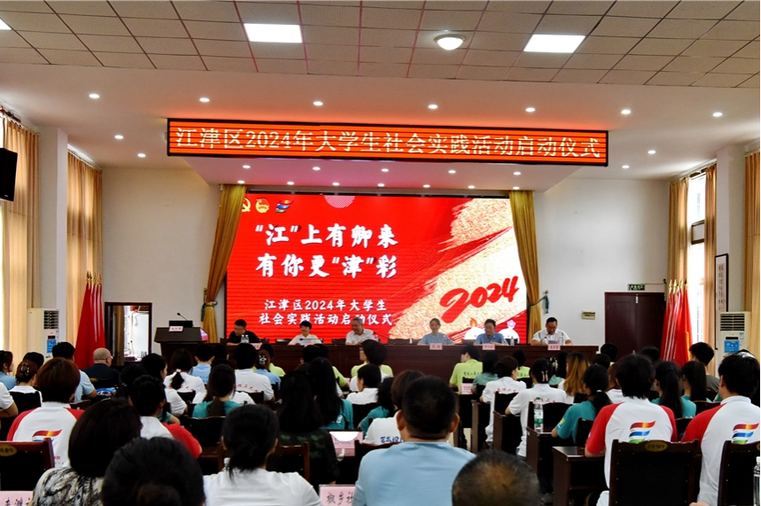 7月10日,江津区“‘江’上有卿来 有你更‘津’彩”2024年暑期“三下乡”社会实践活动启动仪式在先锋镇政府举行。“小云雀”服务队参加了启动仪式暨授旗仪式。