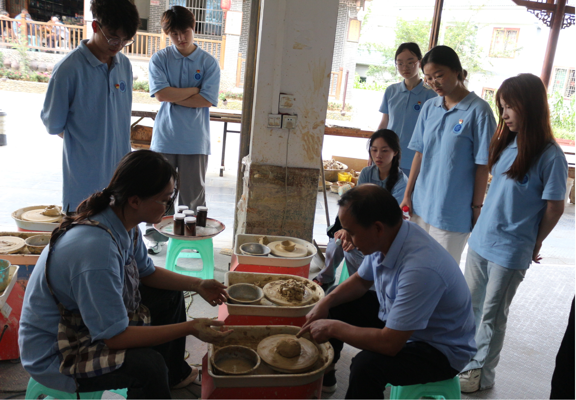 在直播的结尾,还邀请到了土陶非遗传承人母有才老师同我们一起直播,并现场教实践团成员制作土陶。“在来花茂村的路上,我一直期待着,来到花茂村之后,发现花茂村不仅是一个以自然风光和田园景色著称的美丽村庄,更是一个新时代乡村的典范,希望通过直播的方式将花茂村乡村振兴的成果宣传出去,给正在进行乡村振兴的乡村指向方向”。实践团成员金思雨说道。