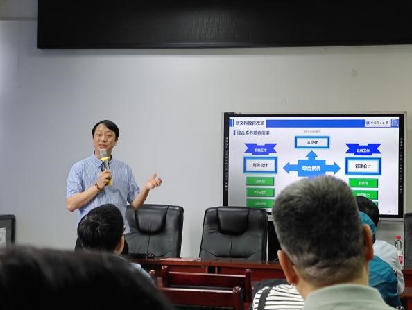 程平教授以其深厚的学术背景和丰富的实践经验,深入浅出地分享了他在会计学专业相关课程讲授、课程体系建立、以及系列教材编写中的经验与做法。他特别强调了“智能会计生态教材与专业数智化公司产品改革”的重要性,并就此展开了详细的阐述。