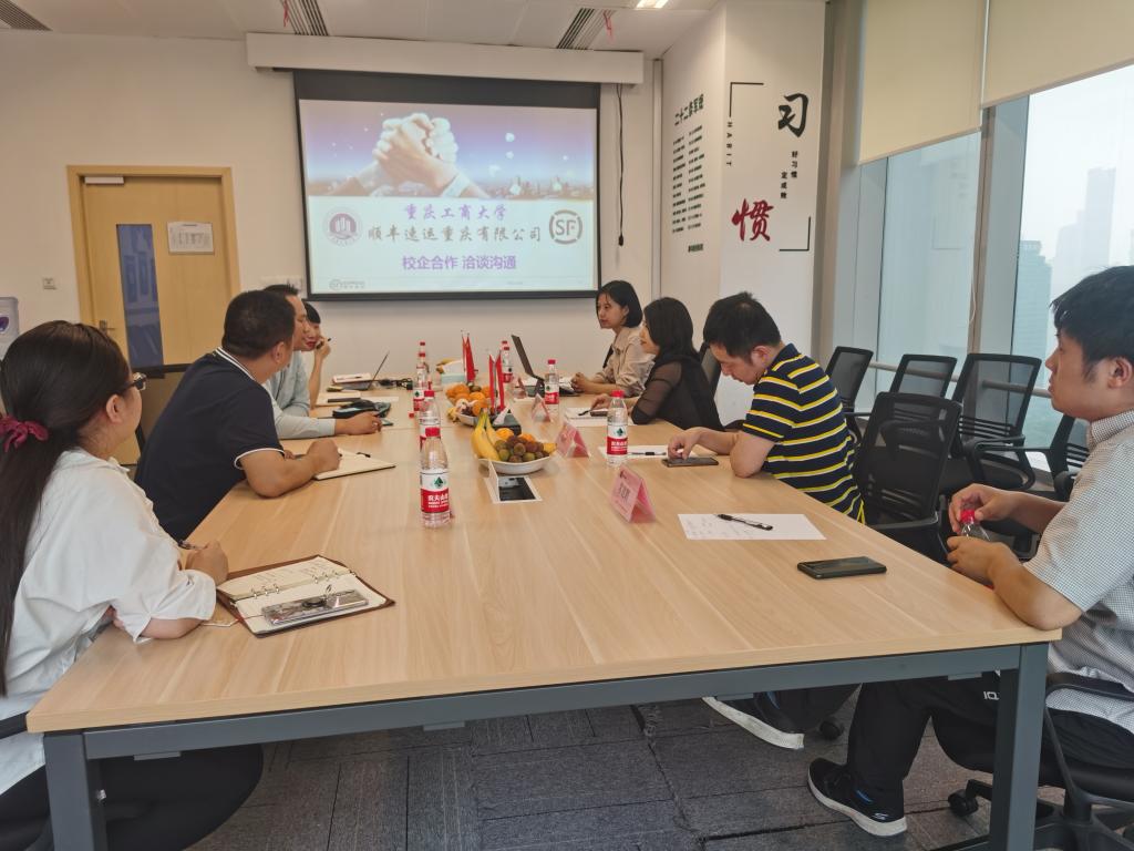 2021年6月10日上午,学院黄钟仪经理、詹川副经理,国际国内交流办公室主任曾倩、物流管理系常建鹏副教授赴顺丰速运重庆有限公司开展产学研合作交流。