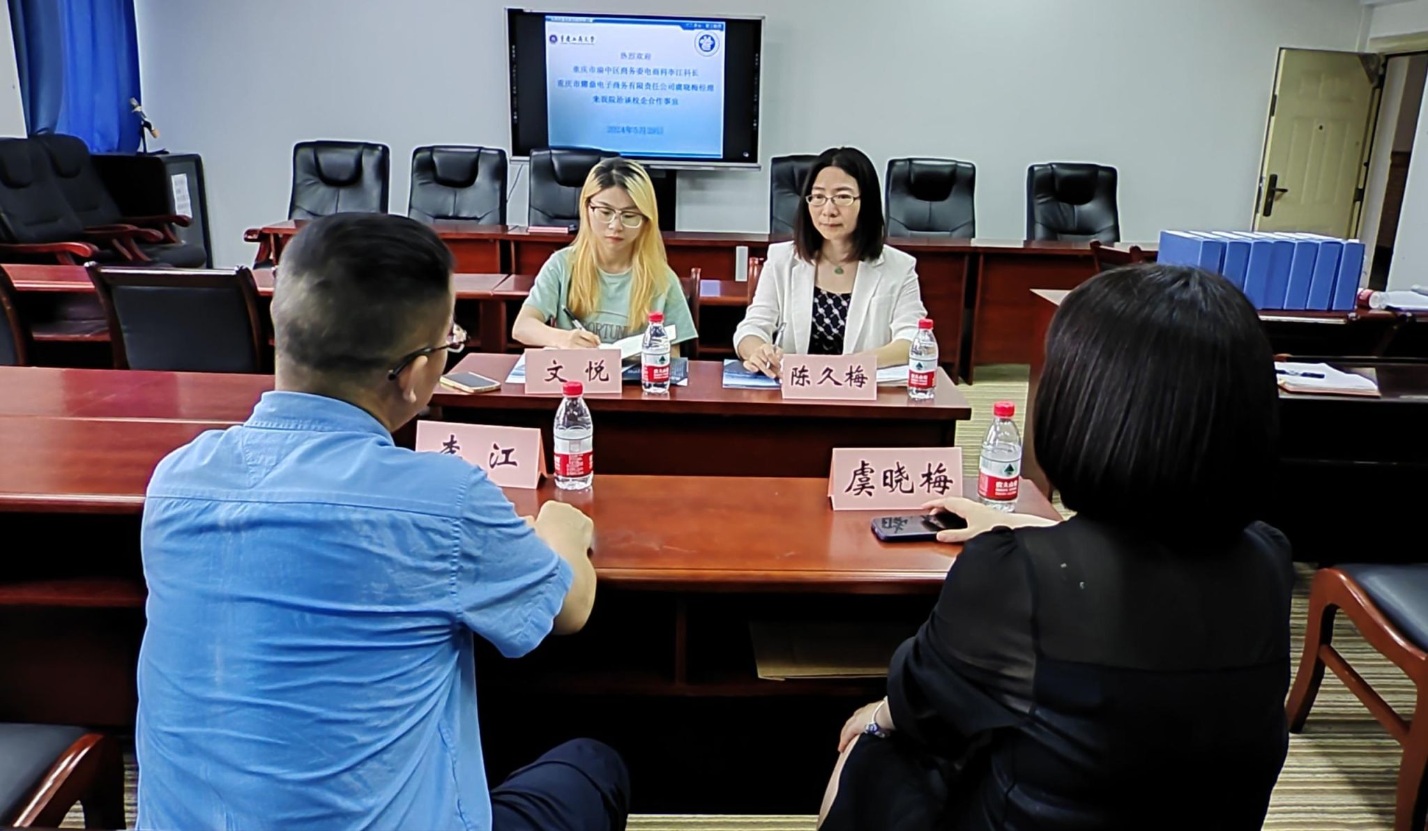 2024年5月29日下午,重庆市渝中区商务委电商科李江科长、重庆市耀鼎电子商务有限责任公司虞晓梅经理,来公司洽谈校企合作事宜,学院陈久梅副经理、电子商务系副主任文悦老师参加了本次交流会。