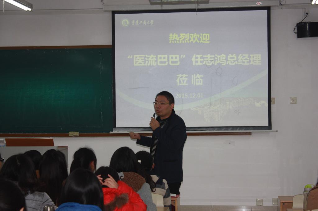 11月23日2014级物流专业1.2班70余位同学在副经理王燕教授、专业教师陶熠等老师的带领之下,走进“医流巴巴”参观与学习。同学们通过对企业的直观了解、对物流仓储的直观认识,以及通知企业相关人士的专业讲解,结合之前理论学习的内容有了很多的感想,同时也有一些思考与问题亟需解决。因此,学院诚意邀请“医流巴巴”创始人任志鸿总经理走进学校走进课堂为同学们解惑答疑。12月3日上午,“医流巴巴”总经理任志鸿来到博智楼7205教室为2014级物流专业1、2班的同学们授课,受到了同学们热情的欢迎。