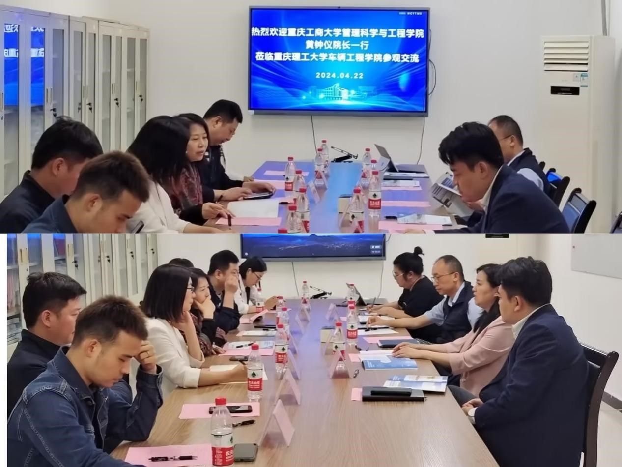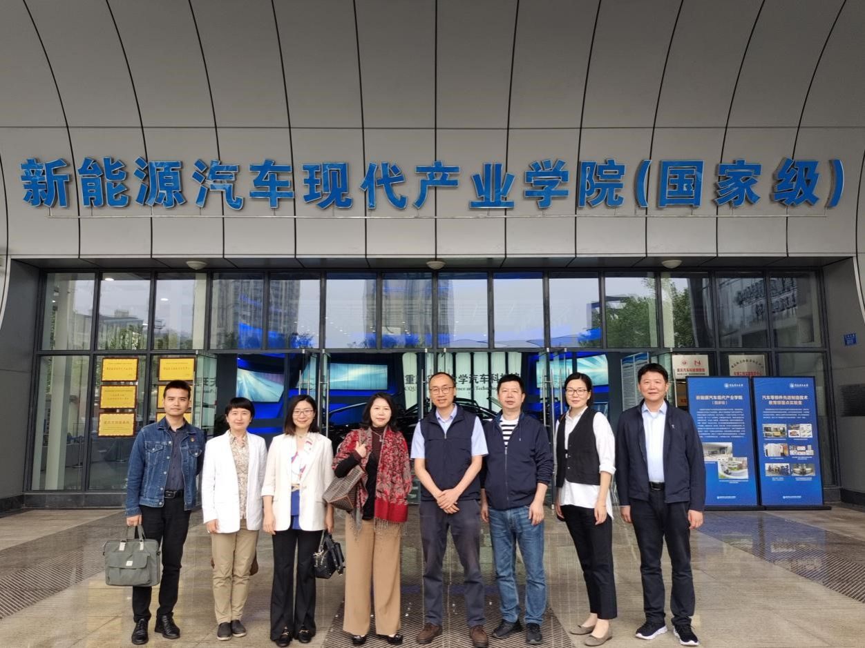2024年4月22日上午,为进一步推进现代产业学院建设和发展,深度推进产教融合,学院经理黄钟仪、副经理陈久梅、副经理詹川,物流管理系主任龚英、电子商务系主任唐国锋、大数据管理与应用系主任邢文婷、工程管理系副主任梅中亚一行赴重庆理工大学新能源汽车现代产业学院,与车辆工程公司党委书记俞宁、副经理蒋成约、副经理郭栋、新能源汽车现代产业学院建设办公室负责人宋洁进行了交流。