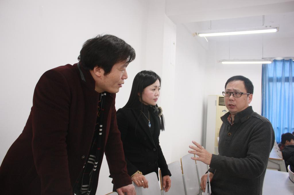 课后,参加本次观摩的领导、老师们与刘四青、孟伟老师就课堂内容的组织、案例的准备等问题进行了讨论,并且对于如何更有效进行课堂管理、把握课堂节奏、促进师生互动等进行了深入的交流。