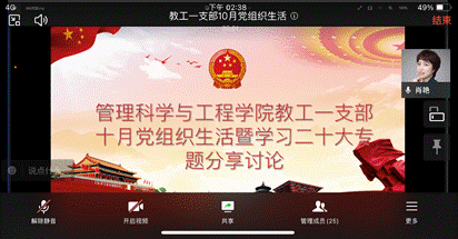 2022年10月16日,在观看完中国共产党二十大开幕式后,HAHA体育教工一支部立即组织开展了“学习贯彻二十大,我们该怎么做”在线讨论活动。会议由支部书记曾倩同志主持,共设学习二十大精神专题党课、学习体会分享、党委书记邓德敏同志总结三项议程,支部党员参加会议。