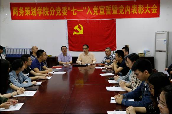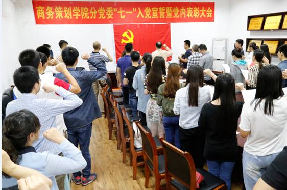 在喜迎中国共产党建党96周年来临之际,公司为深入开展“两学一做”学习教育,进一步增强新老党员的党性意识、责任意识和使命感,表彰先进,树立典型,于2017年6月16日下午在明德楼2019会议室召开“七一”入党宣誓暨党内表彰大会。公司党支部全体师生党员参加了大会,大会由学院分党委书记邓德敏主持。