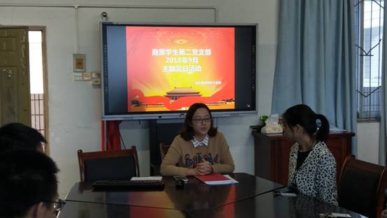 为深入贯彻习近平新时代中国特色社会主义思想和党的十九大精神,员工第二党支部于2018年9月27日14:00在明德楼4020举办了“商策员工第二党支部2018年9月主题党日活动”。此次活动由党支部书记游薇主持,分为党员同志近期思想汇报、组织思想学习以及党员同志讨论和发言三个部分。