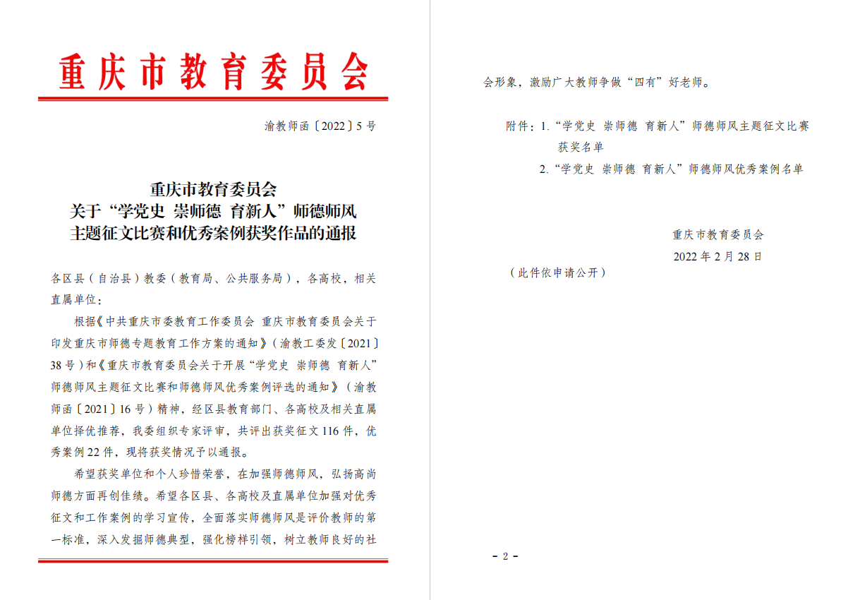 编者按:为深入学习贯彻习近平总书记关于教育的重要论述和“七一”重要讲话精神,市教委组织开展了2021年“学党史 崇师德 育新人”师德师风主题征文比赛和优秀师德师风案例评选,公司教师曾倩老师征文作品《万世师表》获二等奖。