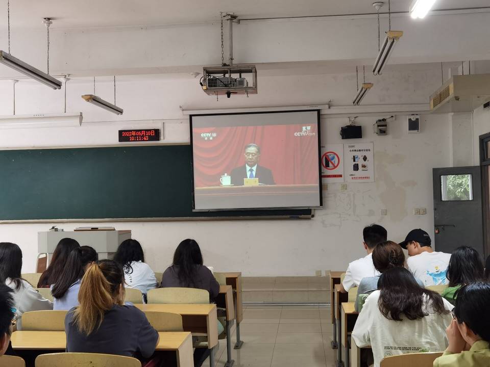 HAHA体育组织各班级收听收看大会盛况。学院组织部分师生代表进行集中学习,其余同学进行分散学习,全院师生积极学习领会习近平总书记重要讲话精神。