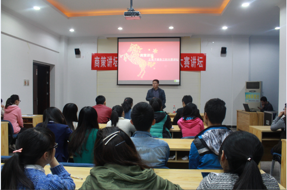 讲坛开始,梁经理上台发表讲话,向参加本次讲坛的商策学子介绍了开设此次讲坛的目的并对本届“三创“大赛的一些相关情况和注意事项进行了说明。随后,叶书记上台做补充发言,同时代表学院对即将参赛的在座学子们送上了鼓励与祝福。叶书记发言结束之后,讲坛正式开始,周勇老师首先上台为大家做大赛的细节指导,向同学们大体介绍比赛规则,让各位参赛选手做好心理准备,迎接一场硬仗。继周老师之后,曾波老师以马云、马化腾为案例为大家讲述了中国近些年来电子商务的发展,同学们也在听讲的过程中感悟颇多。最后,讲坛进入问答环节,同学们争先恐后的的向两位老师提出自己所遇到的问题,两位老师也耐心细致的回答着同学们的问题,两位老师丰富的专业知识以及耐心的解答使得到场的听众与选手们都深感收获颇丰。