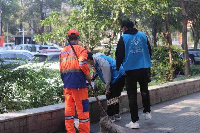 本次活动分为上午和下午两场,上午的活动于早上九点开始。首先,由协会负责人介绍街道打扫范围并进行人员分工。随后,环卫工人向志愿者们演示保洁车、吸扫车的使用,志愿者们也对这项未曾接触过的事物表现出极大热情,彰显了青年活力。紧接着,志愿者分组跟随环卫工人除杂草、添绿植、打扫街道卫生。经过两个小时的辛勤劳动,街道变得纤尘不染。打扫结束后,志愿者为环卫工人分发慰问品并合影留念。到此,上午的活动顺利结束。