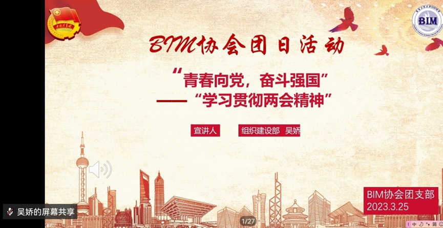 今年是贯彻落实党的二十大精神的开局之年。为深入学习贯彻全国两会精神,引导协会成员深刻领会两会精神实质,切实增强协会成员的使命感与责任意识。2023年3月25日,HAHA体育BIM协会在企业微信组织开展了以“青春向党,奋斗强国”为主题的线上团日活动。