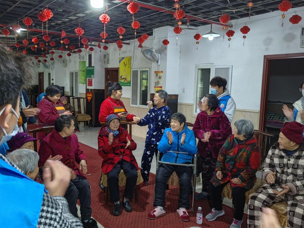 首先,志愿者们到达场地后分工有序地完成了活动开始前的准备工作。下午三点,主持人致开场词,活动正式开始。志愿者们先以合唱《我的祖国》、《映山红》等歌曲,激发老人兴趣,唤起爱国之情。随后又表演了精彩的舞蹈串烧,为老人们带来了视觉上的享受。紧接着,两个互动游戏进一步将活动气氛推向高潮,志愿者热情邀请老人们参与游戏,促进了老人和志愿者的交流。在这之后,志愿者们表演了小品,并开展了《折纸花》的互动游戏,志愿者们与老人交流互动,营造了轻松愉快的氛围。最后,活动以朗诵节目《我骄傲,我是中国人》结束。