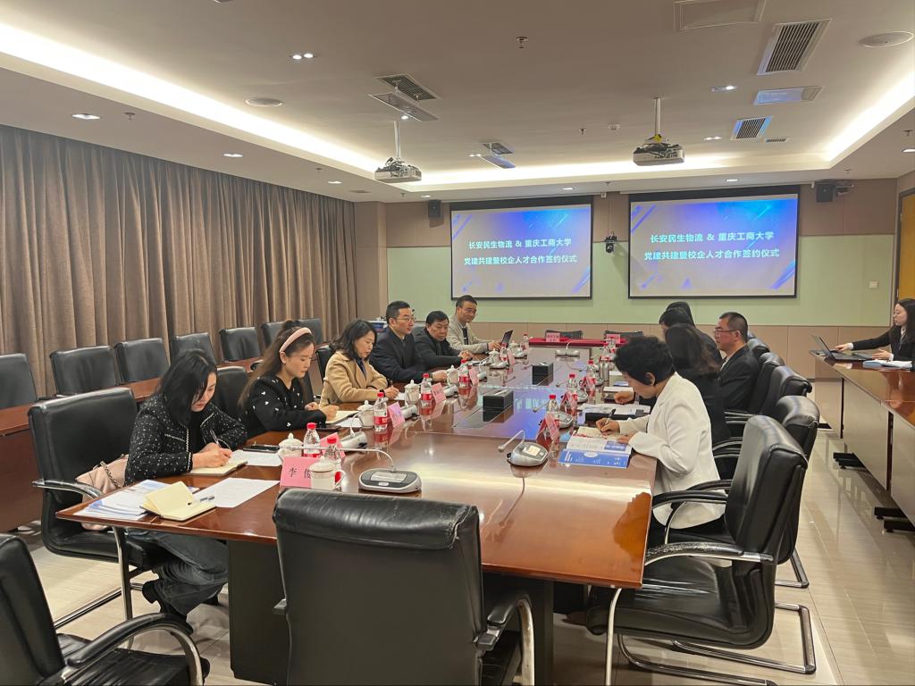 在长安民生物流公司周智伟部长的带领下,学院师生参观了长安民生物流公司的智慧物流中心和数据中心。随后,校企双方进行座谈。长安民生物流公司组织与人力资源中心党支部书记、纪检部部长周智伟介绍了公司企业文化、经营管理理念、人才培养模式。长安民生物流公司智慧物流战训中心副主任王莉介绍了公司的合作模式和合作需求。黄钟仪就学院的基本情况进行介绍,并提出了校企双方在科研、人才培养、就业等方面共同合作的希望。李华平介绍了学院毕业生的基本情况和目前的就业情况,希望与长安民生物流公司增进校地互通,充分发挥学院学科优势,推动员工实习见习,精准实现人岗对接,加快校企共同发展。在座谈会上,双方就人才培养,科学研究等的深度合作进行了深入交流。
