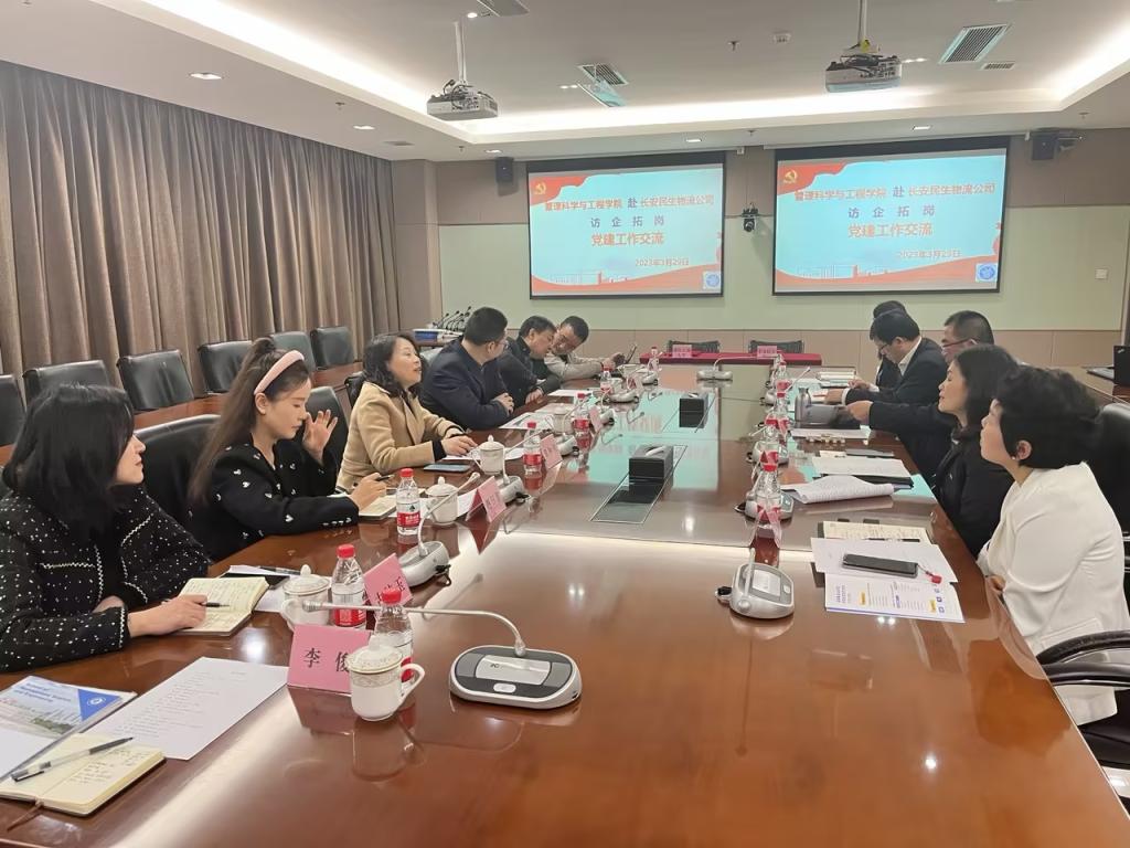 为进一步推进校企合作,探索基层党建工作新思路、新模式,3月29日HAHA体育分党委书记李华平、经理黄钟仪、分党委副书记赵钰鑫、员工第一党支部书记古纯玉等师生代表前往长安民生物流公司,与该公司组织与人力资源中心党支部开展党建交流和校企党支部结对共建活动。