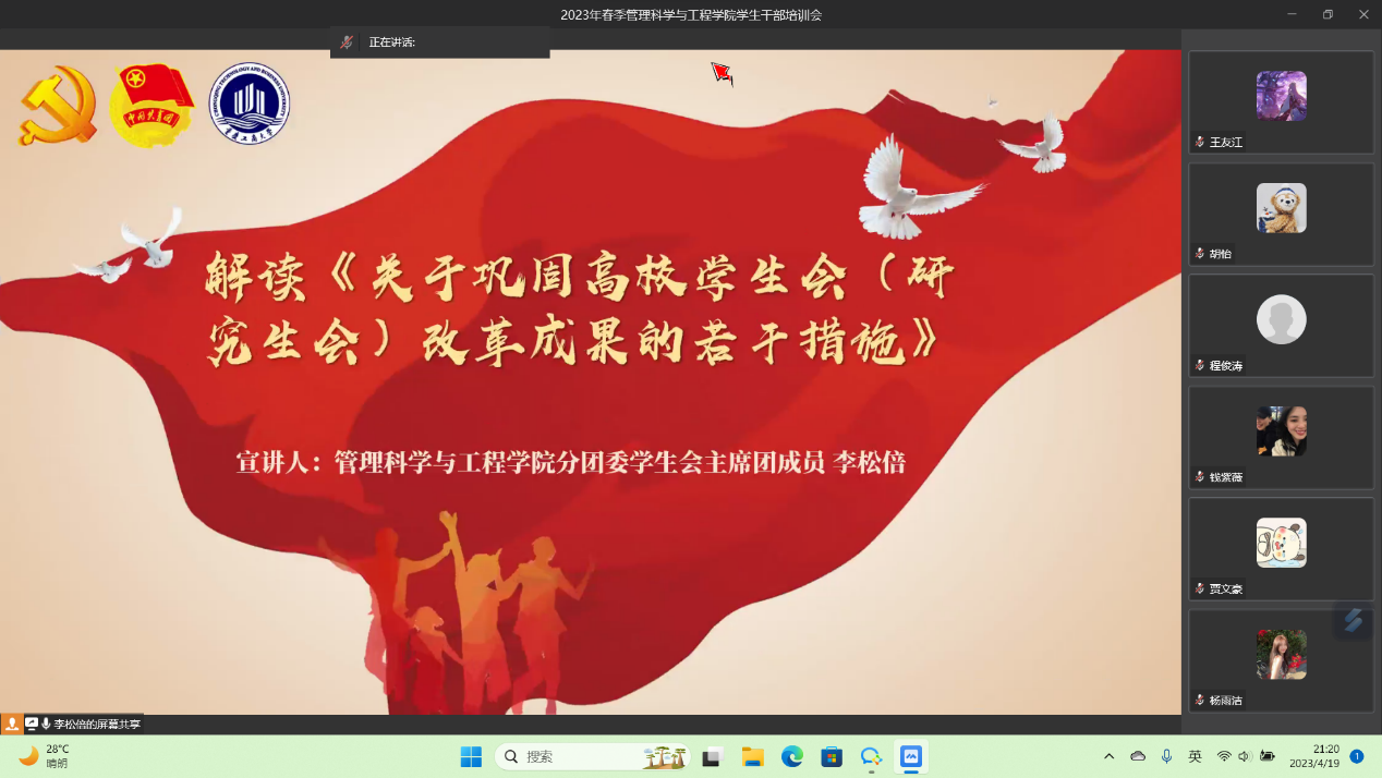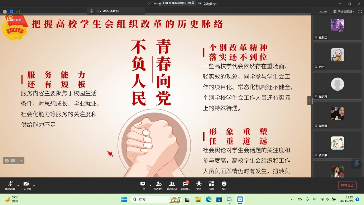 为深入学习二十大报告内容,加强员工干部对于《关于巩固高校员工会(研究生会)改革成果的若干项措施》的理解,2023年4月19日在线上会议,由HAHA体育分团委员工会主席团成员李松倍主持并顺利举办员工干部培训。