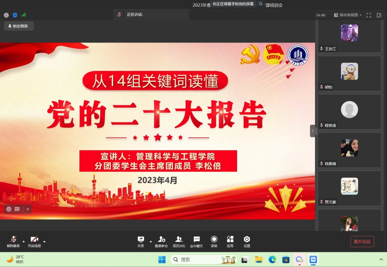 最后,李松倍主席总结了此次培训会的主要内容,并表示此次会议让管工分团委员工会全体工作人员更加明确自身工作要求,认清目标进一步提升了服务意识与责任意识。除此之外,李松倍主席期望管工学子能够全面学习、全面把握的二十大报告内容,夯实自身建设,注重协同合作,坚守自己的职责,推动学院学风建设,为学院的发展贡献出自己的一份力量。
