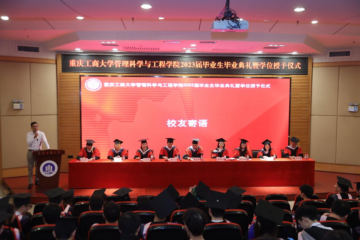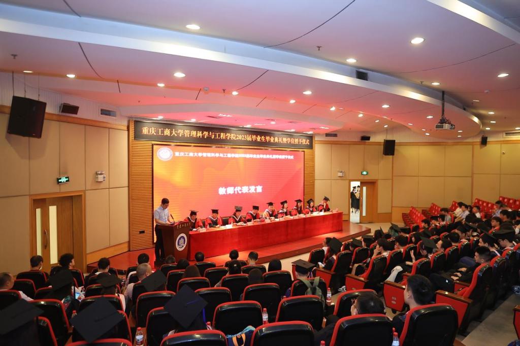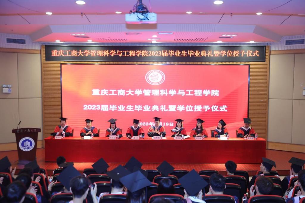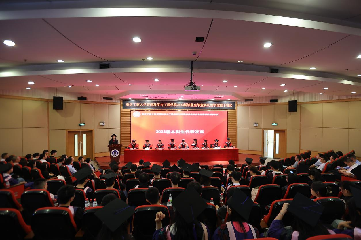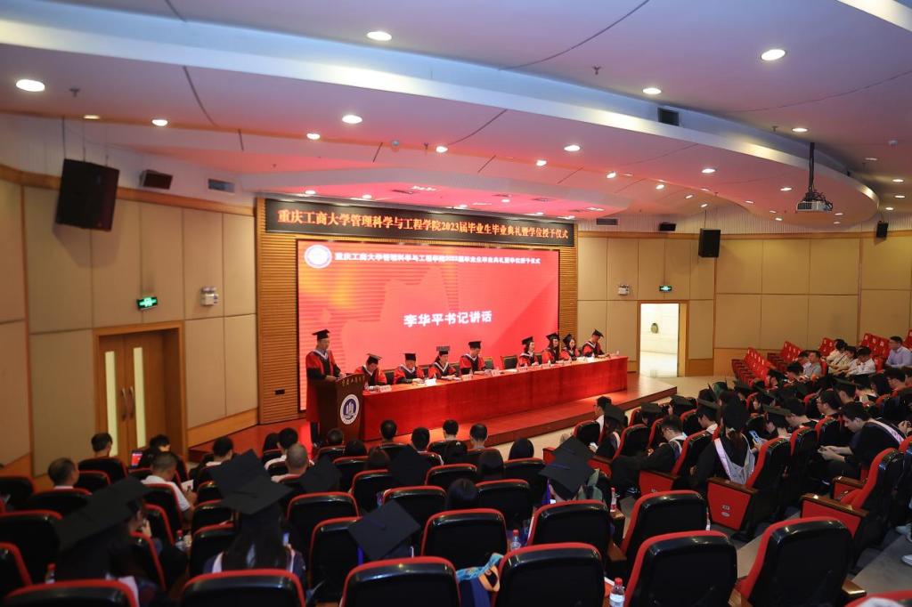 典礼现场隆重热烈,委书记李华平、经理黄钟仪,副书记赵钰鑫、副经理詹川、陈久梅,工程管理系、物流管理系、电子商务系、信息管理与信息系统系主任及教师代表出席,员工代表、家长代表、及2023届全体毕业生齐聚一堂,共同见证409名毕业生的人生成长过程中重要的一刻。本次毕业生毕业典礼暨学位授位仪式由赵钰鑫副书记主持。