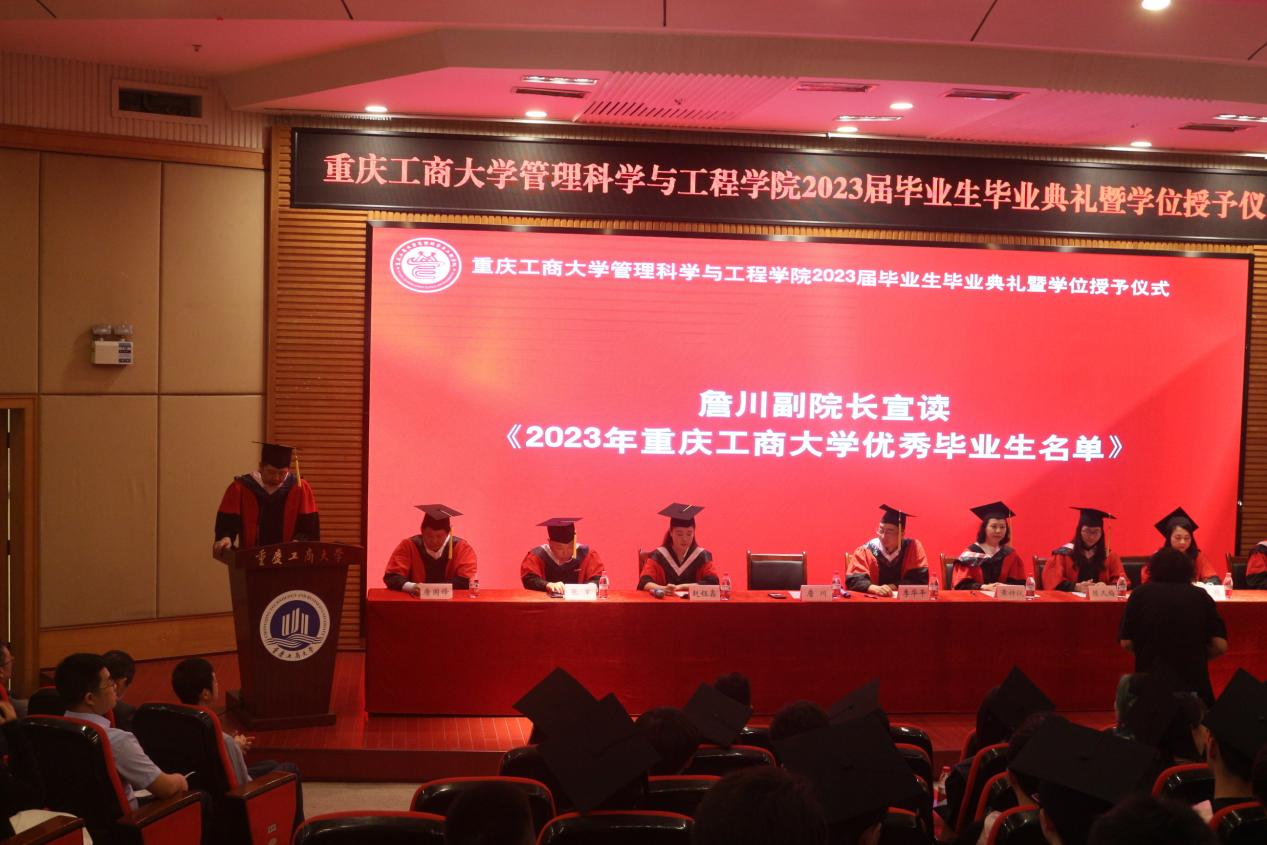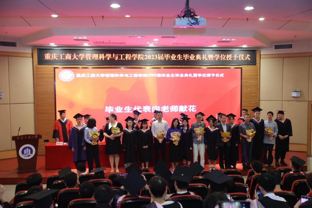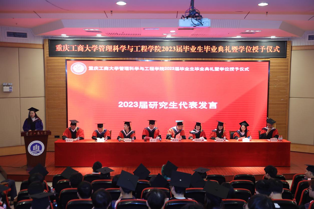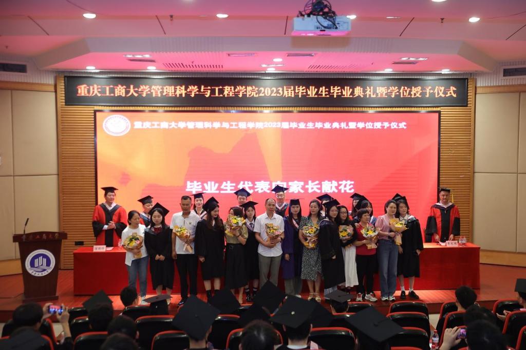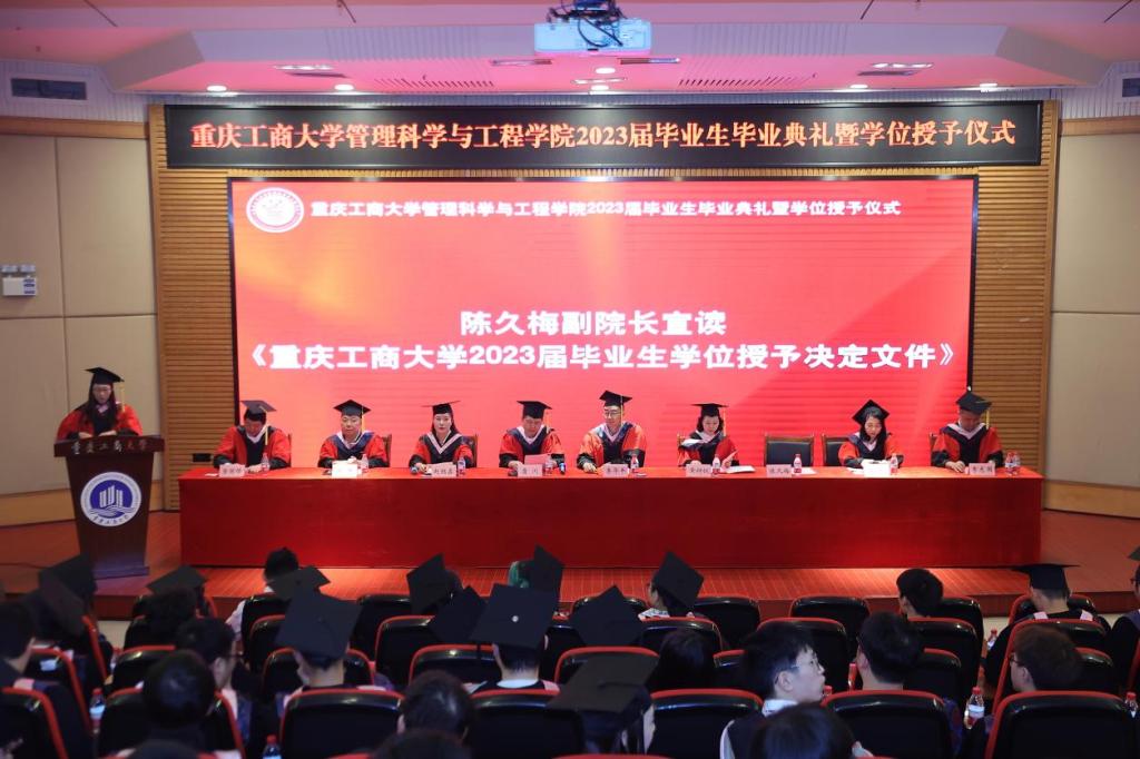 典礼现场隆重热烈,委书记李华平、经理黄钟仪,副书记赵钰鑫、副经理詹川、陈久梅,工程管理系、物流管理系、电子商务系、信息管理与信息系统系主任及教师代表出席,员工代表、家长代表、及2023届全体毕业生齐聚一堂,共同见证409名毕业生的人生成长过程中重要的一刻。本次毕业生毕业典礼暨学位授位仪式由赵钰鑫副书记主持。