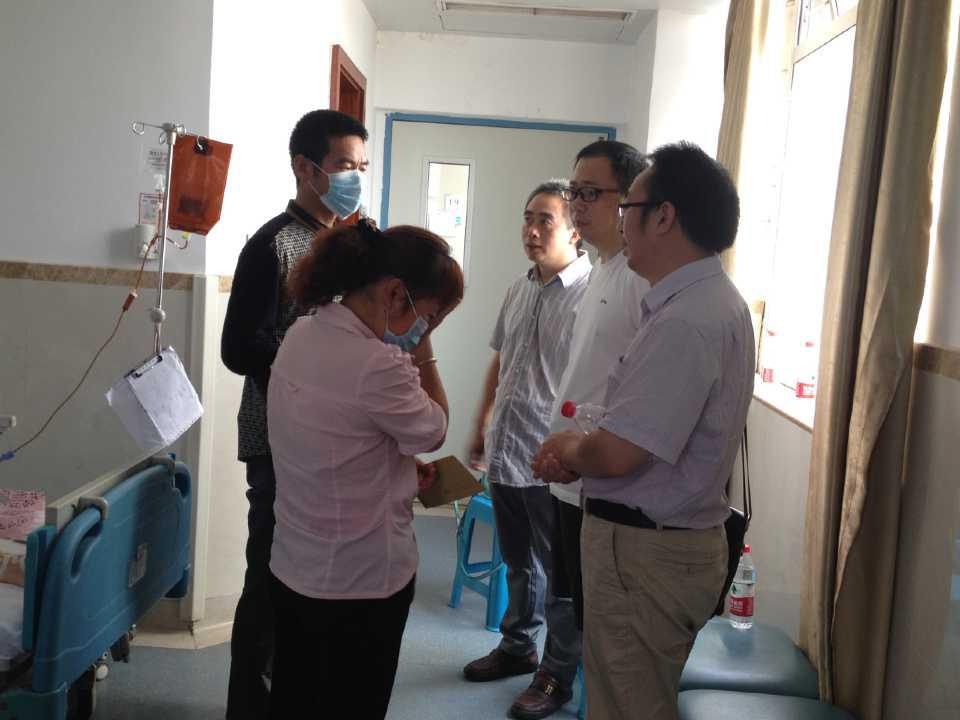 7月17日中午,商务策划公司党总支书记邓德敏、经理骆东奇、党总支副书记叶海林和2014级市场营销专业辅导员禹洋春对在此患白血病住院的员工冯晓及其父母进行特别的家访。