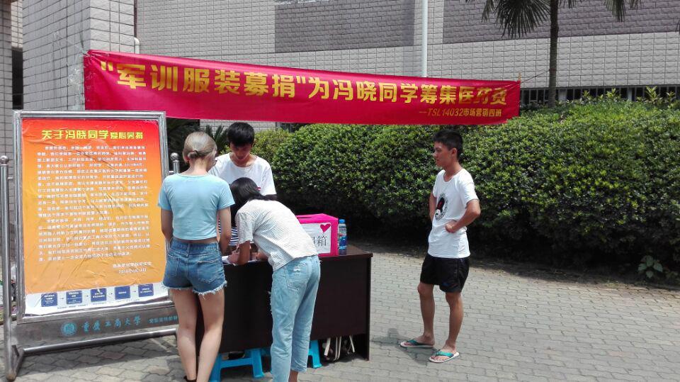 商策学院、通识学院分团委员工会以及校义协、商策学院义协多次为她组织全校性的捐款,就在7月17日上午,HAHA体育2014级员工军训结束,当日中午,商务策划学院义协组织一起为冯晓组织募集了1000套的军训服装进行义卖,下午师生们又为冯晓的医疗费多提供了6500多元的帮助。在生命面前,每个有良知的人都不会选择沉默,真心呼唤有更多的社会人士对这位坚强乐观的女孩给予帮助。