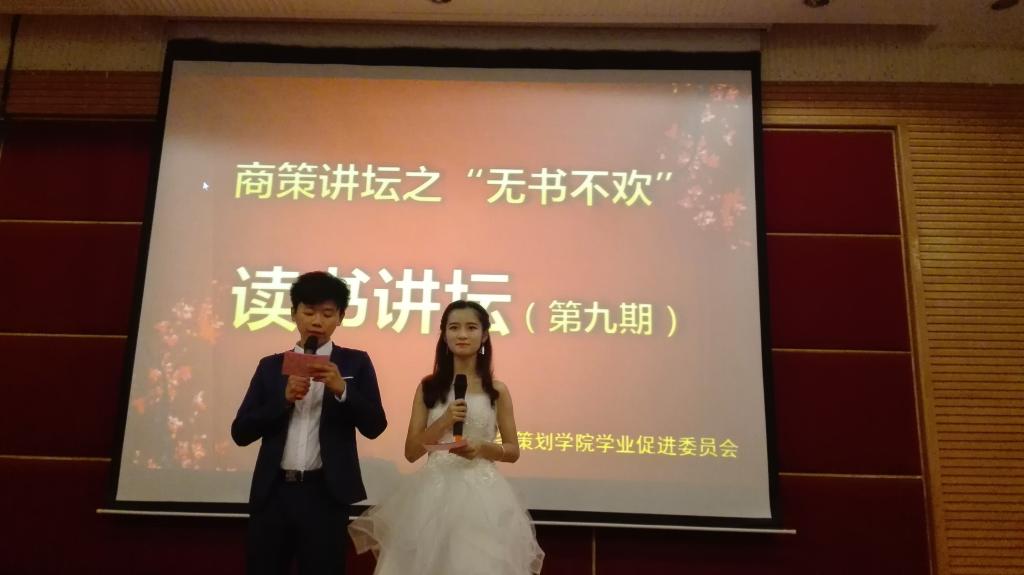 参赛选手的演讲精彩纷呈,有创新的方法指导,有人生的发展规划,有对时间的管理,有对学习方法的探究,还有许多感人至深的亲情故事,启发我们懂得感恩,珍惜眼前人等等。通过参与读书讲坛活动,参赛选手的自信心、书面和口头表达能力也得到了提升。相信商策讲坛之“无书不欢”读书讲坛有学院领导的支持和同学们的积极参与,会越办越好,商策学子也会越来越“爱读、勤读、善读”,养成好读书、读好书的习惯!