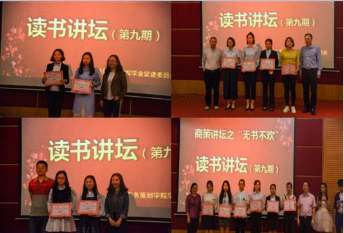 为提高员工的思想文化素质,养成员工阅读经典书籍的习惯,促进员工的科学及人文修养,推进学院的学风建设,培养具有健全的人格社会主义合格建设者和可靠接班人。商务策划学院师生积极响应习近平2013年11月参观孔子研究时倡导:“读书可以让人保持思想活力,让人得到智慧启发,让人滋养浩然之气。”的精神,在学院领导大力支持、学院学业促进委员会精心组织、同学们积极参与的基础上,学院从2015年5月起,坚持每月或每两月举办一期读书讲坛,至今已经成功举办了九期,对激励商策学子的多读书、读好书,起到强有力推动作用。