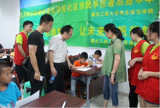 7月14日上午10时,公司党总支叶海林副书记带领学团办辅导员邓艺老师,看望和慰问公司在石桥铺老顶坡社区市民学校进行暑期“三下乡”社会实践的志愿者员工和院分团委员工会干部。