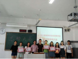 紧接着,邓艺老师带着全体学进会干部干事一起,向学院领导对学进会的关心、期望和指导,表示最诚挚的感谢。随后,学进会主任徐才清、学进会各部门干部,分别对过去一学年的工作进行了总结。各位学进会干部代表对部门工作做了详细的总结报告,总结了一学年以来本部门工作取得的成绩与心得并找出不足之处。随后各部门优秀干事代表发言。最后,叶海林副书记与邓艺老师向主任颁发了聘书,主任为部长颁发了聘书,部长为优秀干事颁奖。
