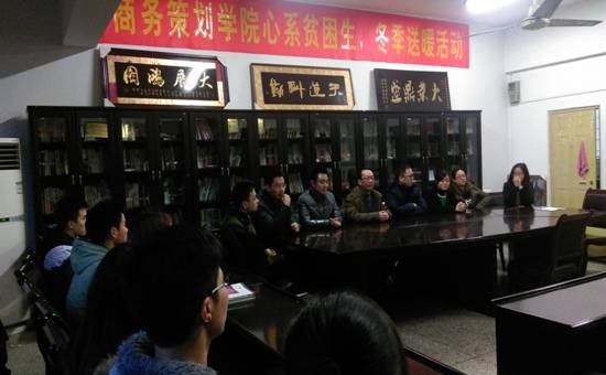 为使广大家庭经济困难员工度过一个温暖的冬天,让广大寒门学子感受商策大家庭的温暖。2015年12月21日,HAHA体育商务策划学院组织并开展了“心系贫困生冬日送温暖”活动,党总支书记邓德敏、副书记叶海林以及全体辅导员(古纯玉、封海粟、游薇、樊少华、向丹丹、邓艺、禹洋春等)参加了此次活动。党总支书记邓德敏在为受助同学们发放棉被之余,与同学们亲切交流,询问同学们的学习及生活情况,并表示学院会一如既往的关心困难员工,帮助各类困难员工,希望同学们珍惜眼前的学习环境和学习机会,好好利用大学这四年的机会,学有所成。党总支副书记叶海林对受助的贫困生表示亲切的关怀,并希望他们平安健康,抓紧学习,期末考出好成绩,不断奋发成才,并常怀感恩之心,报效国家和人民,回馈社会与亲人。