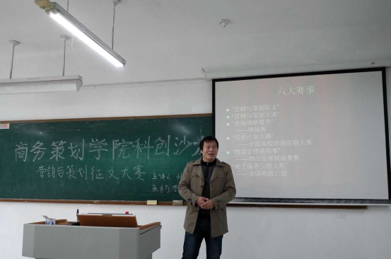 11月29日下午两点整,在主校博智楼07205举办的商务策划学院科创沙龙第八期正式开始。首先由刘四青老师主讲,主讲内容有:营销与策划征文大赛的详细介绍,征文的要求,还有许多征文的例子等等。然后,同学们对于自己在写征文时遇到的一些问题进行提问,刘老师都地认真解答。最后大家一同留影,征文大赛的科创沙龙也渐渐落幕。在此之后采访到,同学们在这次沙龙中收益颇多,其中有一位同学自信的说:“参加这次活动,我写征文的水平肯定提高了。”