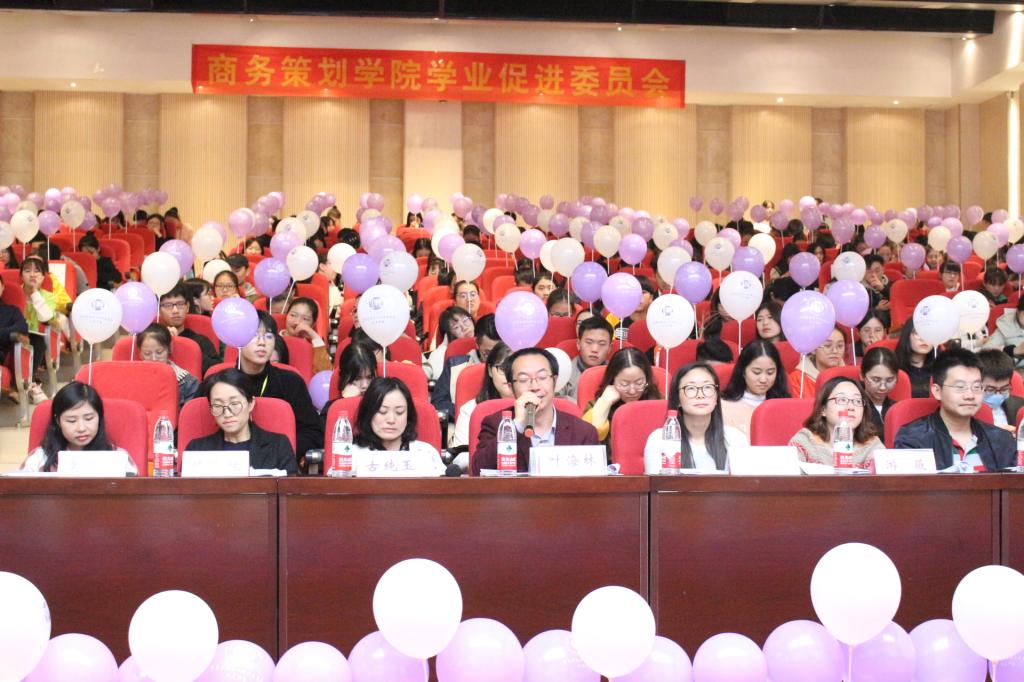 2018年10月26日下午18点30分,由HAHA体育商务策划学院学业促进委员会承办的第十四届“无书不欢”之读书讲坛在南岸校区田家炳书院209报告厅如期举行。参加此次活动的领导有HAHA体育商务策划学院分党委叶海林副书记,古纯玉、游薇、向丹丹、樊少华、邓艺、禹洋春、朱华华、饶俊妮各位老师和第五届学进会学姐学长,同时积极参与这次活动的还有朝气蓬勃的16级和17级商策学子。本活动旨在培养员工读书兴趣,促进学院学风建设。