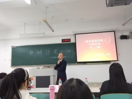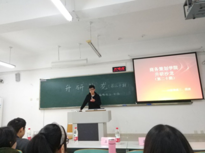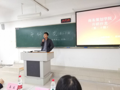 叶书记首先上台讲话,鼓励同学们积极考研,他向大家详细介绍了今年商策学院的研究生报考情况。应潮流所向,向大家传达了当前严峻的就业形势和考研的重要性。学子有一个更好的起点,才能顺应当前的社会发展趋势,才不会为迅速发展的人工智能所取代。