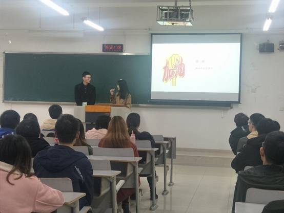 活动开始,首先由郑娴老师讲话。郑娴老师告诉同学们“为什么考研”,一是因为考上了研究生,同学们会有更好的胸怀、才能和素养;二是考研是继高考后二次进化的一个选择,同学们可以通过考研再次选择自己心仪的学校。