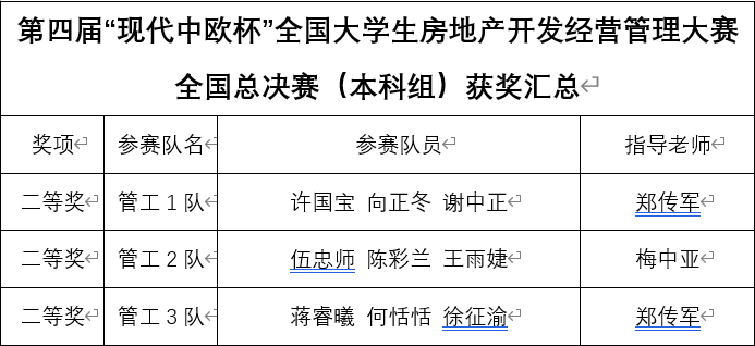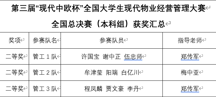 在现代物业大赛中,公司荣获(本科组)二等奖3项。在现代房地产大赛中,公司斩获(本科组)二等奖3项。