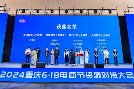6月5日,在渝中区渝州宾馆隆重开幕的“2024重庆6·18电商节资源对接大会”上举行了2024 重庆首届数字人直播嘉年华颁奖仪式,我院小云雀织梦队在该活动中表现优异,在实战演练中位列第一,荣获“最佳数字人主播奖”,这是我校在数字人电商领域的新进步,展现了公司学子在电商直播领域的独特风采。