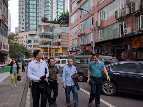 2016年10月21日上午9点30分,学院经理骆东奇教授、党总支叶海林副书记、商务策划系主任黄志贵教授以及辅导员邓艺老师,在杨家坪商业步行街管委会主任李葭萌一行人的陪同下,调研了杨家坪商业步行街、杨家坪前进路农贸市场、杨家坪街道老社区,以及梅堡cityzoo等项目。