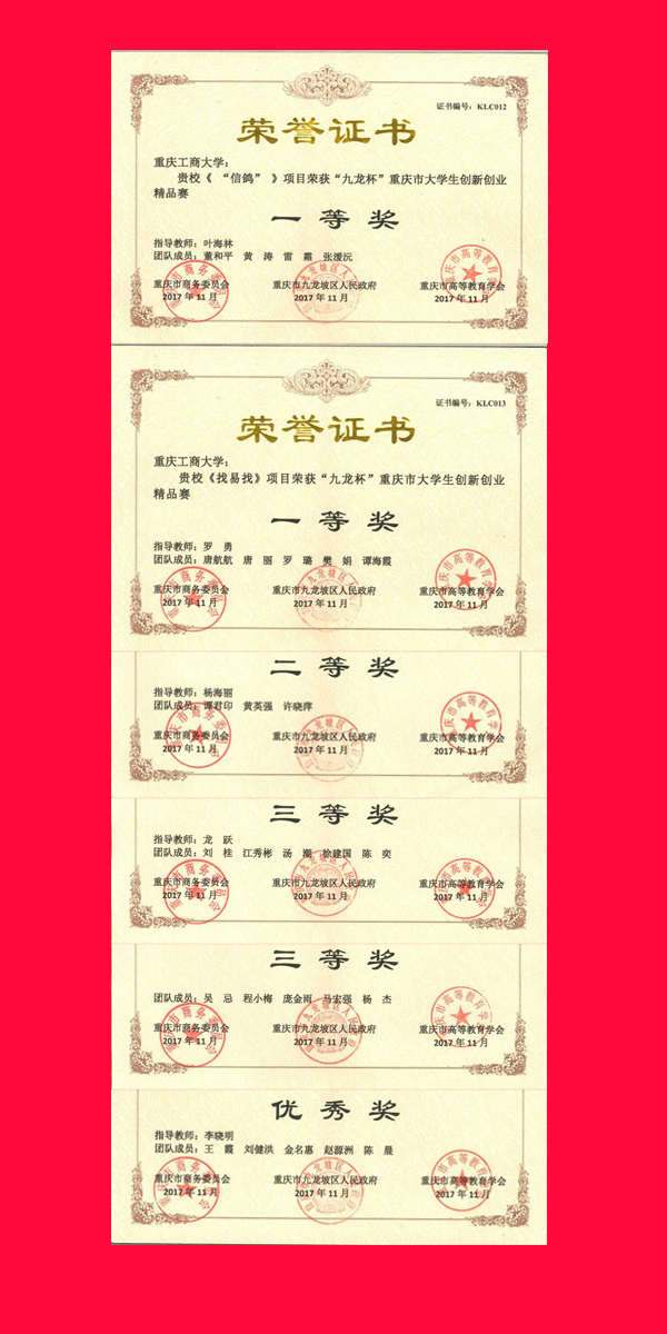 经校级选拔赛,从全市近60所高等院校数千个项目作品中,选送了质量优良的350多个项目作品参加全市高校初赛,经外送专家盲评打分,公司来自商务策划学院、财政金融学院、经济学院等本科老员工的6个项目作品同来自重庆大学、西南大学、重庆师范大学等高校的125个项目作品晋级复赛,经市内外专家通讯评审和现场会审后,共评出86个项目获得市级优秀奖以上奖励。其中前20个项目作品晋级决赛,在11月11日上午到12日上午进行了现场讲解、展示和答辩,由专家评委和100名大众评委进行现场评审。公司有2个项目作品晋级决赛。