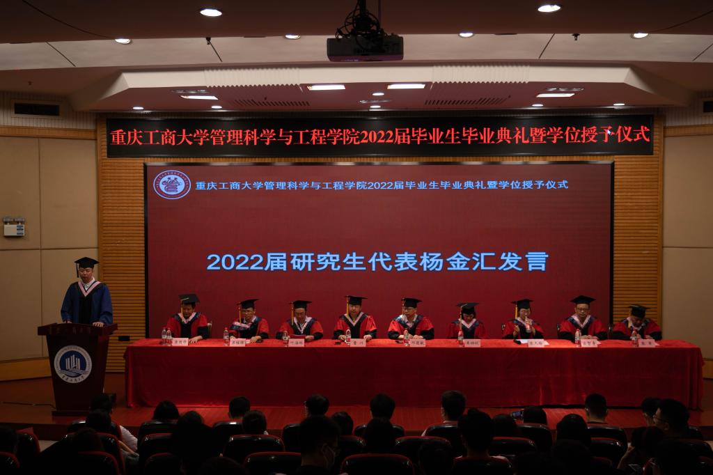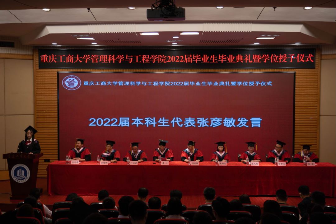 恰同学少年,风华正茂。研究生毕业生代表杨金汇、本科生毕业生代表2018级信息管理与信息系统专业张彦敏上台发言,感恩时代与母校,感谢谆谆教导的老师,感谢默默支持的父母,感谢一路同行的朋友,感谢努力成长的自己,恩泽如光,虽微致远,未来青年人会坚定理想信念,练就过硬本领,为实现伟大中国梦奉献青春和力量。