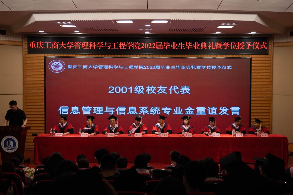 优秀管工员工代表重庆勤鸟圈科技有限公司创始人、2001级信息管理与信息系统专业金重谊为2022届毕业生送上祝福,祝愿毕业生学会珍惜、学会专注、学会自信,以阳光积极的精神面貌会让青年人在任何领域所向披靡,不畏艰难。