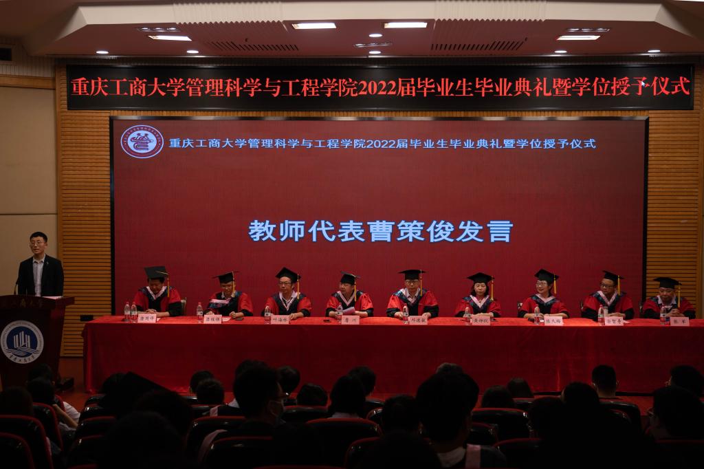6月18日上午,哈哈体育2022届毕业生毕业典礼暨学位授予仪式在博智楼7200举行。管理科学工程学院全体班子成员、各系主任、毕业班辅导员、教师代表、家长代表、员工代表及研究生、本科毕业生等共计280余名出席典礼。学院副经理陈久梅主持典礼。