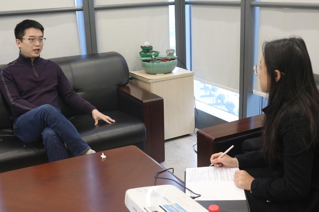 初次见面,金重谊学长微笑着跟记者打招呼,并热情地邀请记者到自己的个人办公室进行采访,关上办公室的门,隔绝门外热闹的工作讨论,在整个采访过程中,学长诙谐、有态度的语言让交流变得轻松愉快。